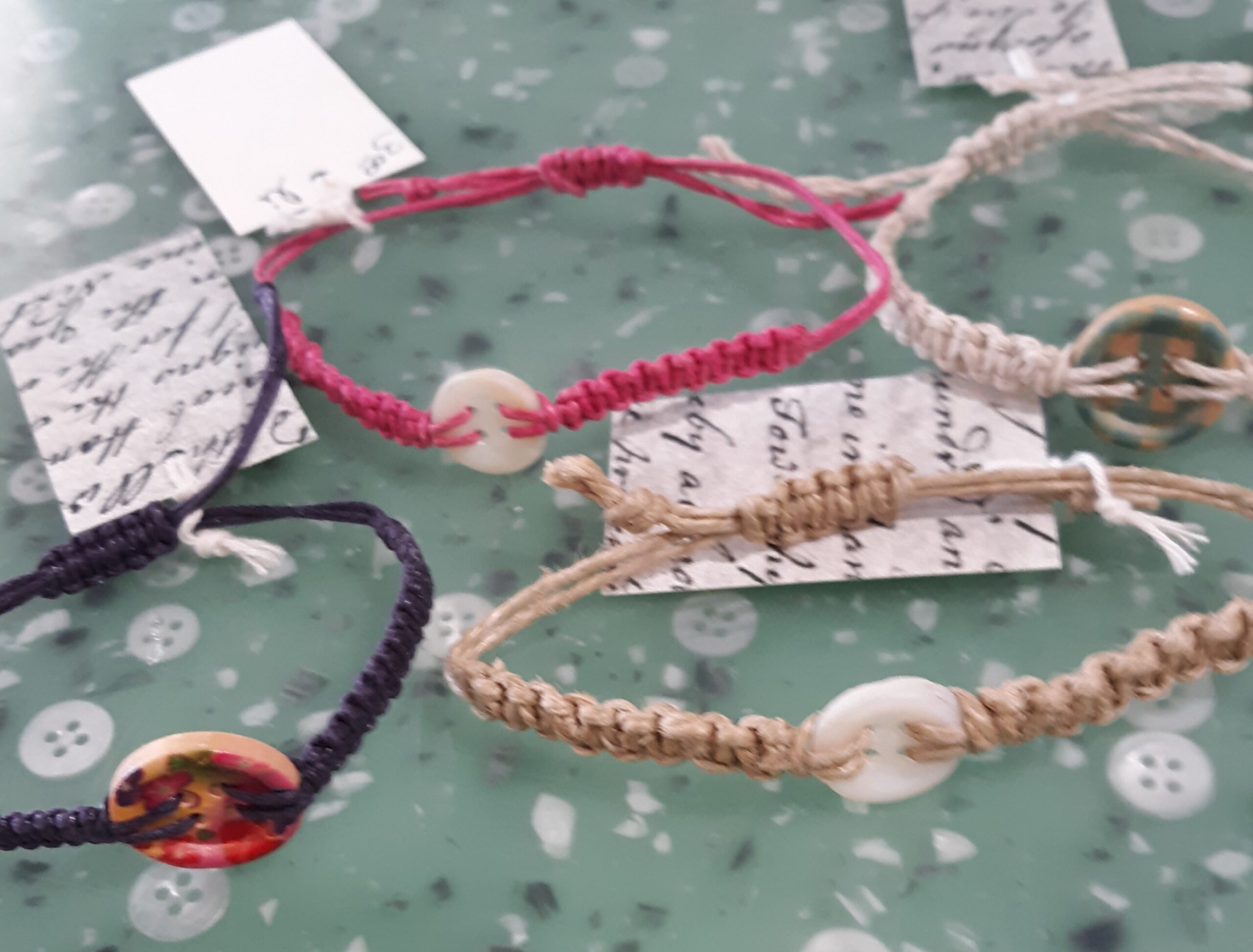 Macromae bracelet - various colors available. Each adorned with a pearl button.